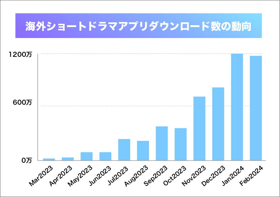さらに、同じショート動画ジャンルである「ショートドラマ」の市場がいままさに急拡大しているのです。実際に、ショートドラマアプリは、2024年2月時点で5,500万ダウンロード世界でされており、220%の成長率で需要が拡大し続けています。
